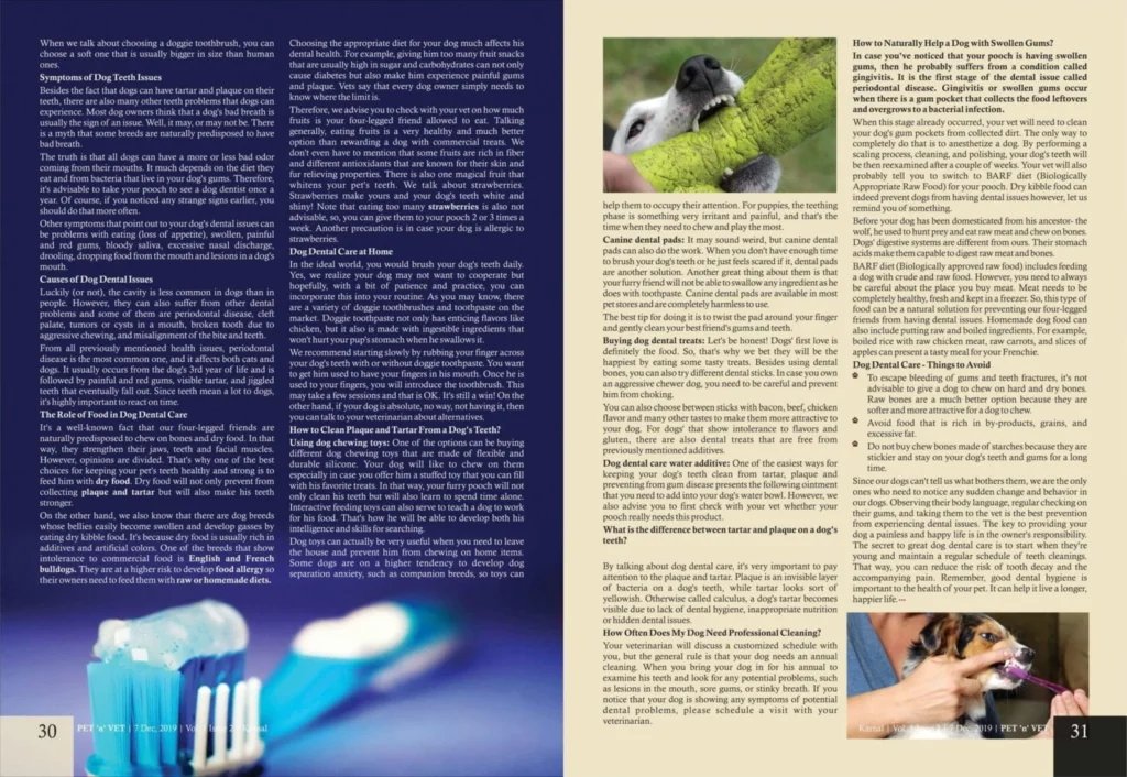 Dog’s Dental Care & Cleaning ,Published in Pet ‘n’ Vet Magazine :December-19