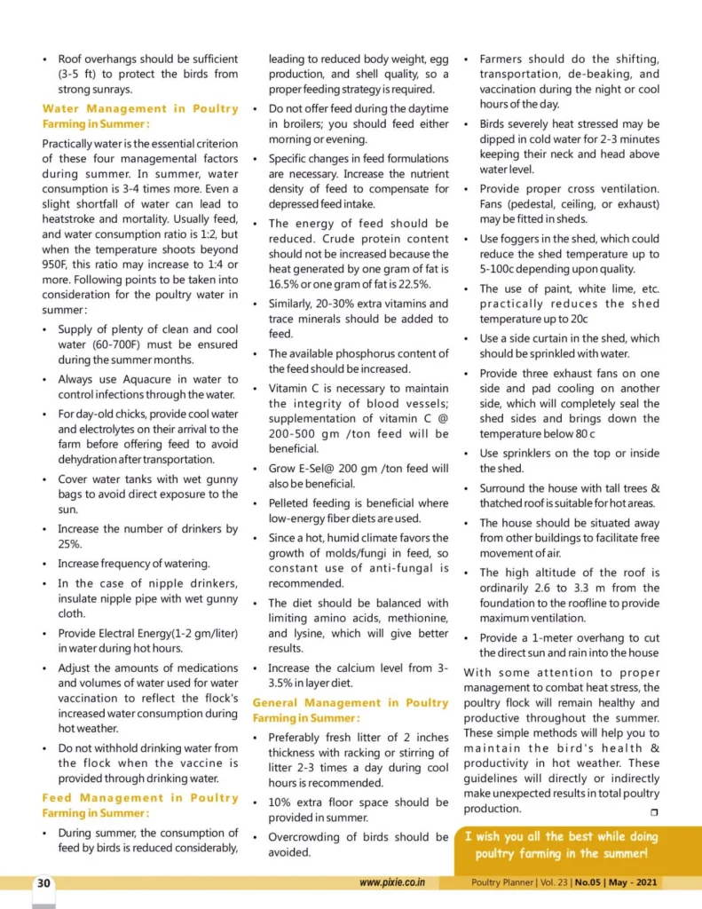 “Poultry Farming in Summer “article was published in Poultry Planner, Magazine,May-21. This article is written by Mr. Rakesh Kumar, Marketing Director -Growel Agrovet Private Limited